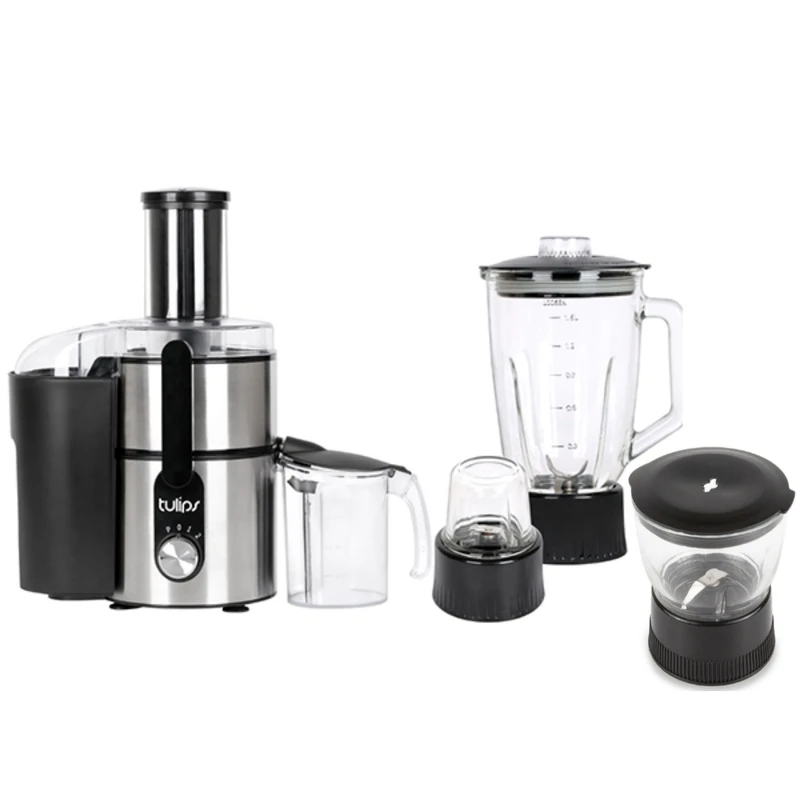 آبمیوه گیری تولیپس مدل Fj-A480 از قدرت و کیفیت مناسبی برخوردار است. صدای ایجاد شده توسط این آبمیوه گیری مانند آبمیوه گیریهای قدیمی بسیار زیاد و آزار دهنده نیست. همچنین تیغههای آن از کیفیت مناسب ساخته شدهاند و بسیار تیز هستند. برای خرید یک آبمیوه گیری خوب به قطر دهانه آن توجه کنید. امروزه اکثر آبمیوه گیریها، برای راحتی کاربران با قطر دهانه بزرگ ساخته شدهاند. بزرگ بودن قطر دهانه، یکی از مزیتهای یک آبمیوهگیری خوب محسوب میشود چرا که به شما این امکان را میدهد تا میوههای کوچک و متوسط را بدون نیاز به برش آبگیری کنید. یک پارچ مخصوص برای آبمیوه گیری تولیپس مدل Fj-A480 طراحی شده است تا در برابر دهانه خروجی قرار گیرد و آب میوه در آن جمع آوری شود. کاربران گرامی میتوانند از ظرف دلخواه و مناسب نیز برای جمع آوری آب میوه استفاده کنند. محفظه جمع آوری تفاله که در قسمت کناری محصول قرار دارد از پلاستیک ساخته شده است. همچنین این محفظه از ظرفیت مناسبی برخوردار است و نیاز به تخیه پی در پی در استفاده طولانی مدت ندارد. مخلوط کن و خرد کن این محصول دارای یک پارچ مخصوص مخلوط کن است که به بدنه اصلی و موتور دستگاه متصل میشود و دستگاه به راحتی تبدیل به یک مخلوط کن و یا خرد کن میشود. پارچ مخلوط کن، خرد کن و آسیاب از شیشه مرغوب ساخته شده است که حالت شفاف دارد و مواد درون آن دیده میشوند. در این پارچ دارای جایگاه مخصوص برای اضافه کردن مواد در حین کار است. با وجود این جایگاه مخصوص، میتوانید انواع مواد مانند شکر و… را در حین کار کردن دستگاه و بدون نیاز به خاموش کردن موتور اضافه کنید. آسیاب بهمراه آبمیوه گیری تولیپس مدل Fj-A480 یک آسیاب کوچک نیز وجود دارد که برای استفاده از آن نیز باید آن را به موتور دستگاه متصل کنید. تیغههای آسیاب نیز از جنس خوب ساخته شدهاند و بسیار تیز هستند که به سرعت موادی مثل گردو و… را آسیاب میکنند، سرعت مختلف این محصول دارای دو سرعت کم و زیاد و عملکرد پالس است. با توجه به نیاز خود و نوع مواد، امکان استفاده از سرعت مناسب وجود دارد.